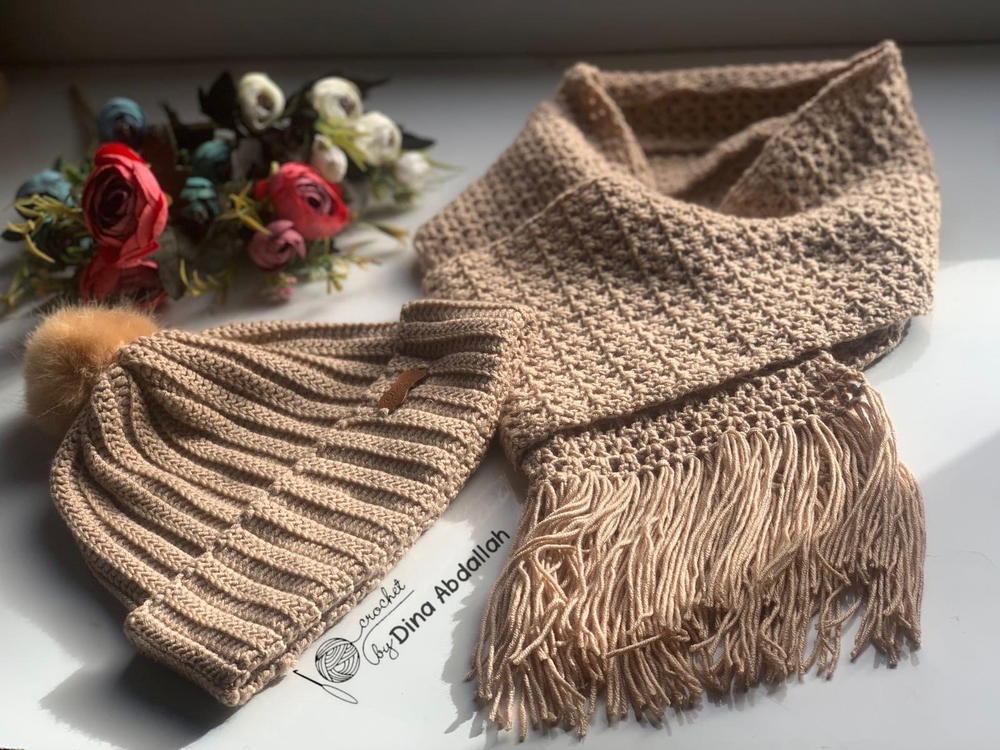طقم مكون من آيس كاب وكوفيه بناتي ، غُزلت بأجود أنواع الخيوط التركي 🍃✅